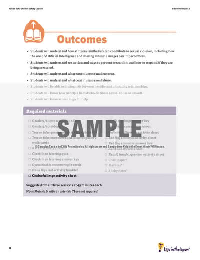 *Note: the Kids in the Know Program contains multiple lessons per grade.
