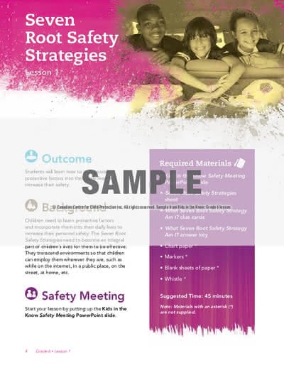 *Note: the Kids in the Know Program contains multiple lessons per grade.